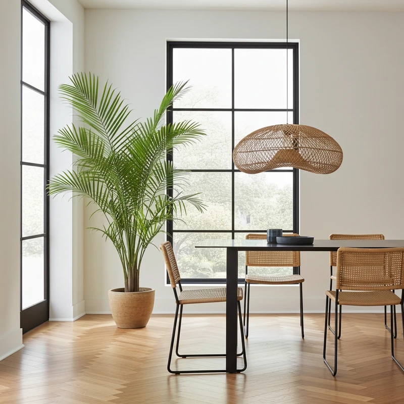 מנורת תלייה מעוצבת אריגת ראטן קעורה.