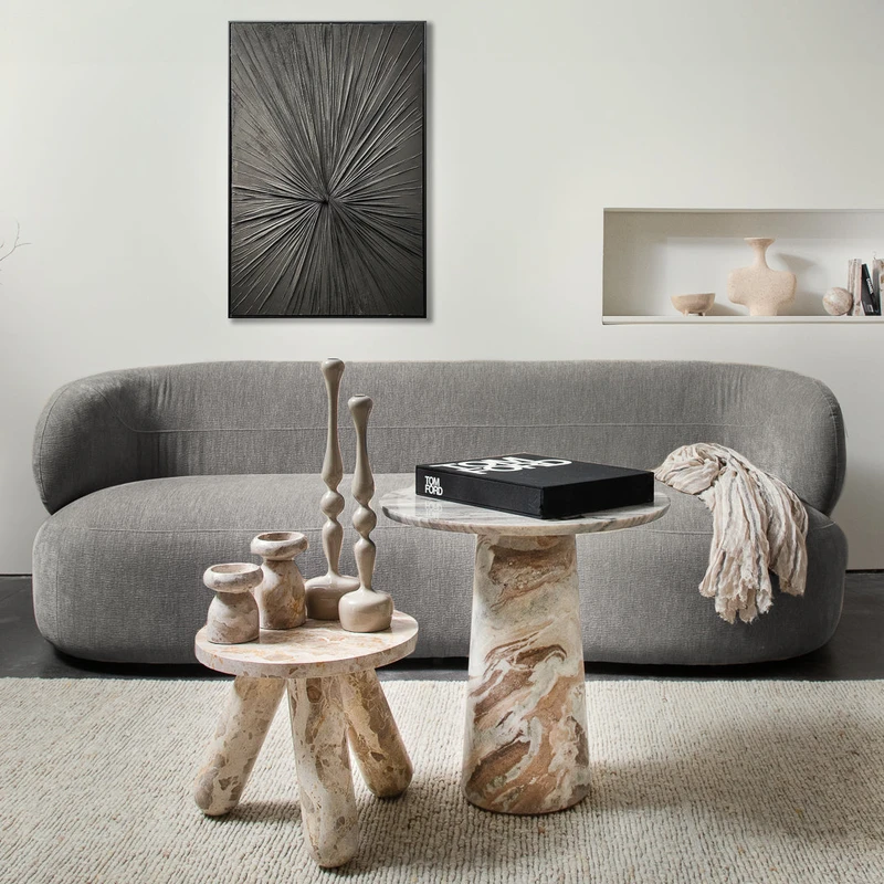 ספת אירוח קרוסבי בצבע אפור. ספת סלון מעוצבת גב עוטף בגימור עגול.