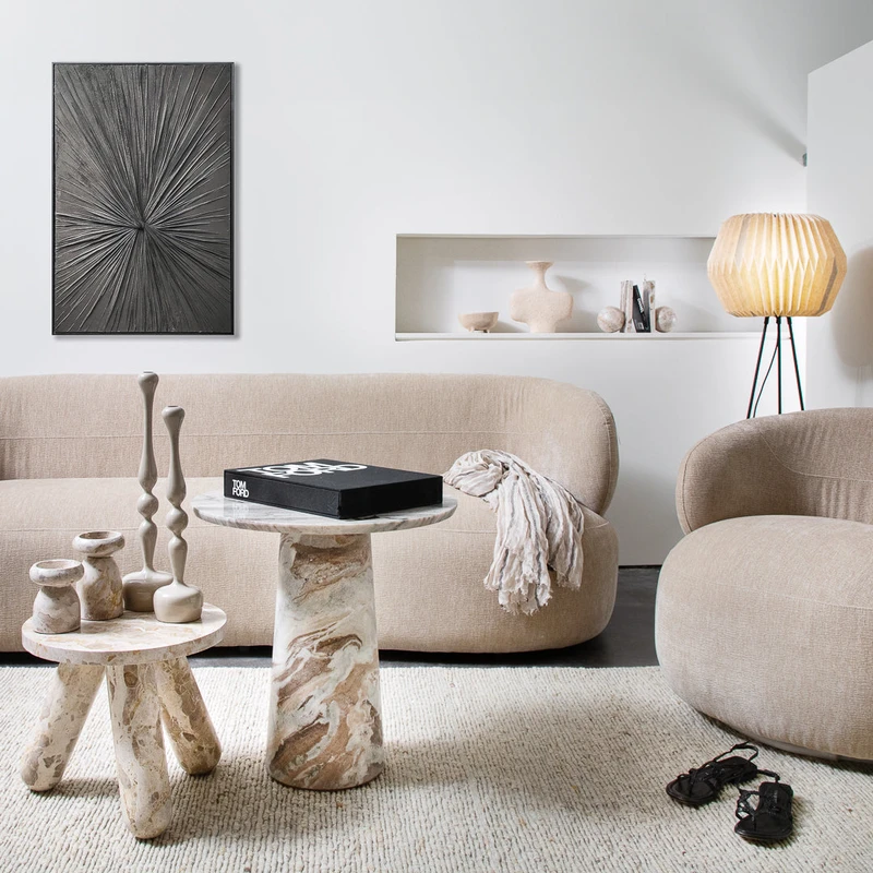 ספת סלון מעוצבת גב עוטף בגימור עגול.