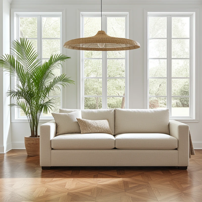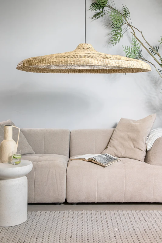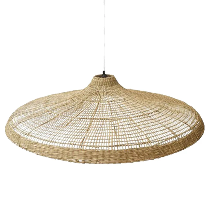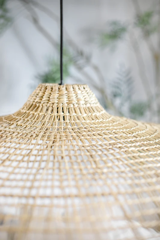 מנורת תלייה ריזורט בגוון טבעי. מנורה מעוצבת עשב ים ארוג בקו מנימליסטי.