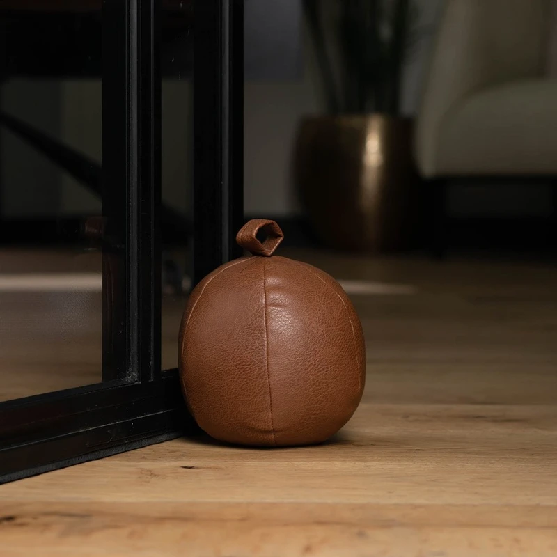 מעצור דלת בצורת כדור חום כולל ידית נשיאה, מדליק ויפה.