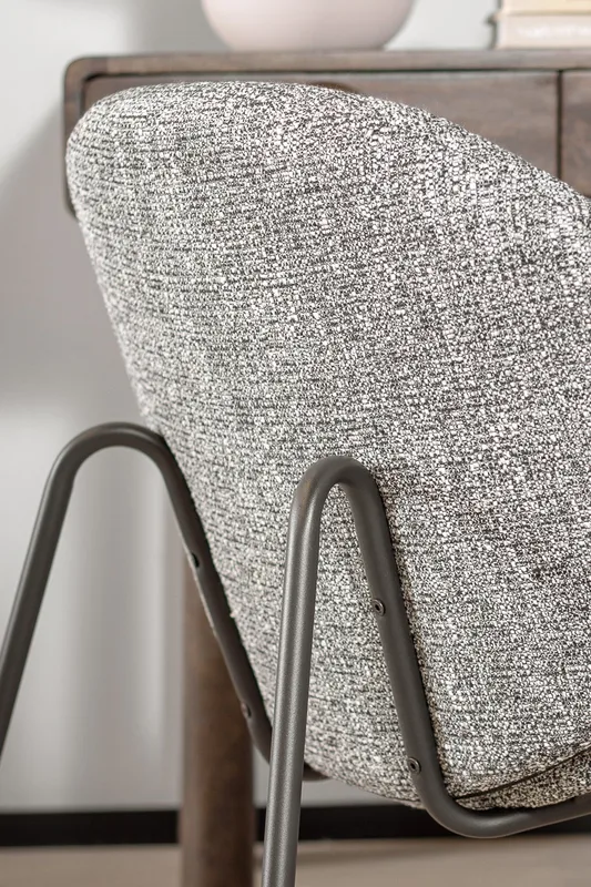 לאונג' צ'ייר לייזי מדיסון בגוון אפור. כורסה מעוצבת משענת ותושבת מעוגלים, הנישאת על רגלי מתכת בגוון זהה.