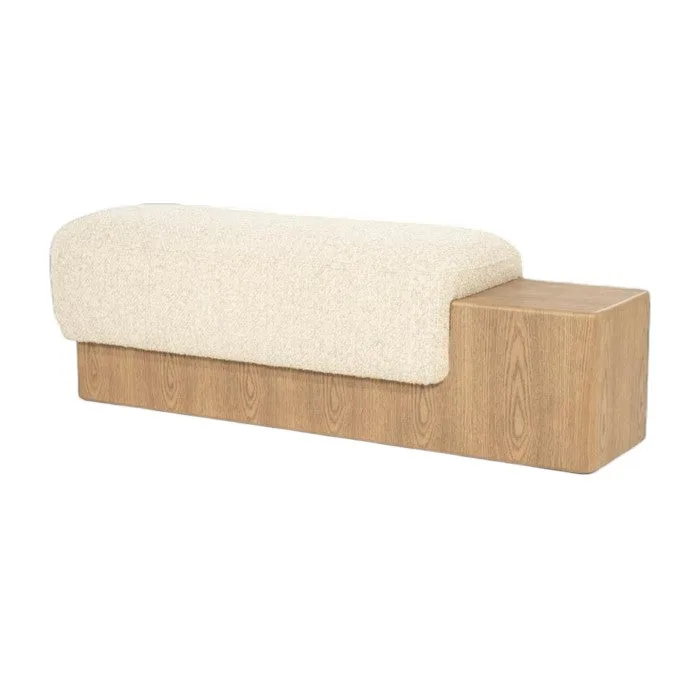 ספסל אורי הוא פריט ריהוט משלים המעניק פתרון פונקציונלי ודקורטיבי כאחד. העיצוב משלב בסיס עץ מאסיבי בעבודת נגרות מוקפדת יחד עם מושב מרופד בבד בז' רך ונעים. זהו הפריט האידיאלי להצבה למרגלות המיטה ליצירת מראה של מלון בוטיק, או בלובי הכניסה לשדרוג מיידי של חלל המבואה.