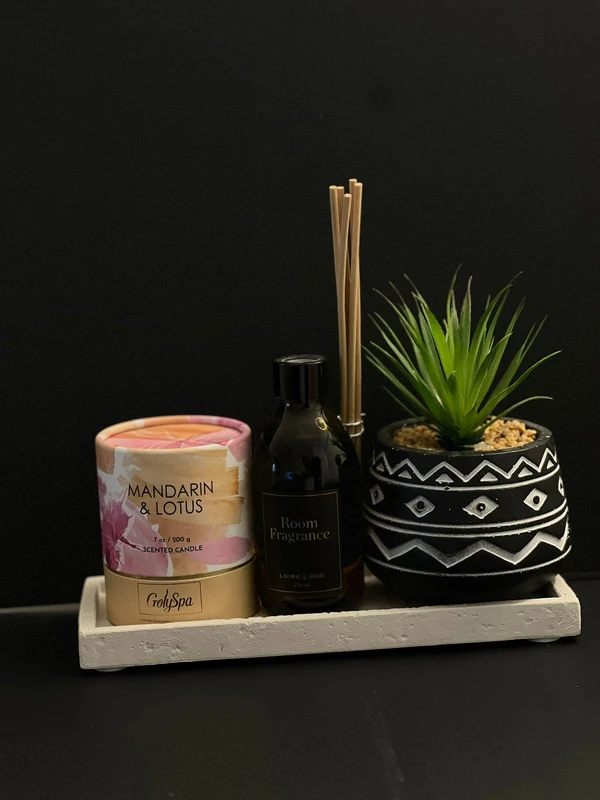 נגש מלבני אבן 28*21 ס"מ-נר אוירה במארז מהודר-מפיץ ריח יוקרתי-עציץ מלאכותי.