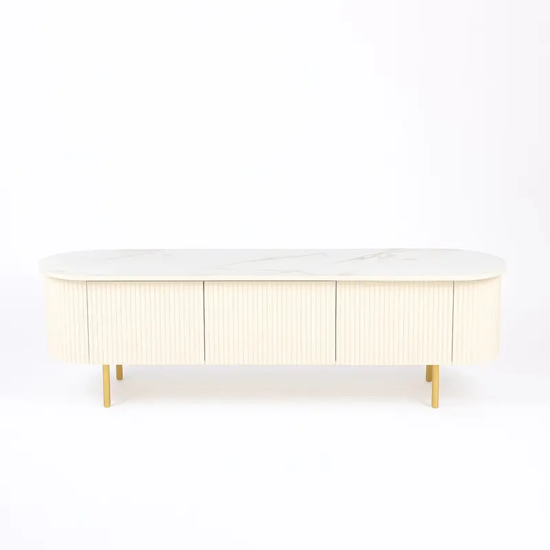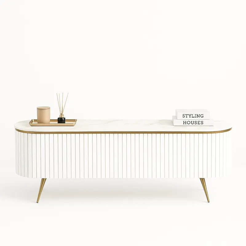 מזנון מעוצב , משטח עליון פורמייקה לבן או שמנת עם גידי שיש ונגיעות זהב למראה יוקרתי